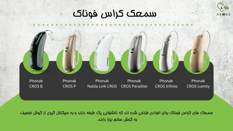 سمعک های کراس فوناک برای افرادی طراحی شده اند که ناشنوایی یک طرفه دارند و به سیگنال گیری از گوش ضعیف به گوش سالم نیاز دارند. مدل های مختلفی از این سری با ویژگی ها و فناوری های متنوع موجود است:
