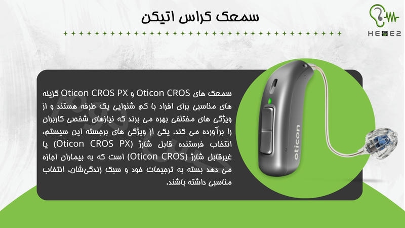 - قابل برنامهریزی به عنوان سمعک کراس یا بای کراس بسته به شرایط شنوایی فرد