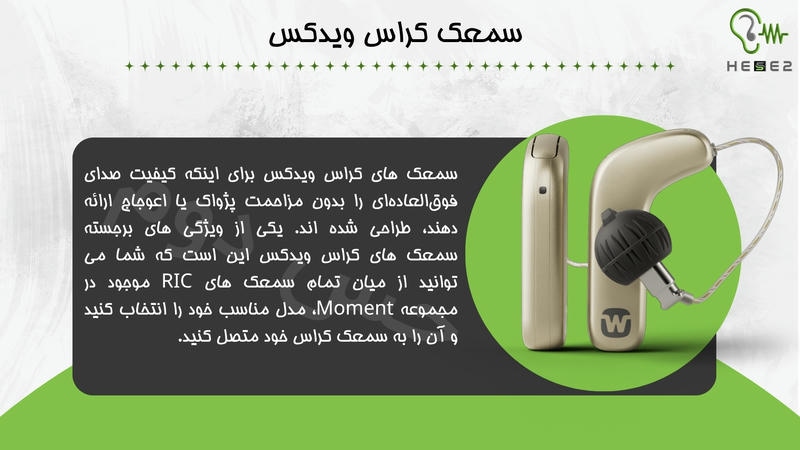 یکی از ویژگی های برجسته سمعک های کراس ویدکس این است که شما می توانید از میان تمام سمعک های RIC موجود در مجموعه Moment، مدل مناسب خود را انتخاب کنید و آن را به سمعک کراس خود متصل کنید.