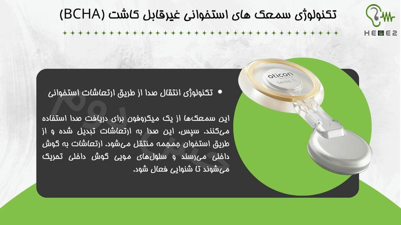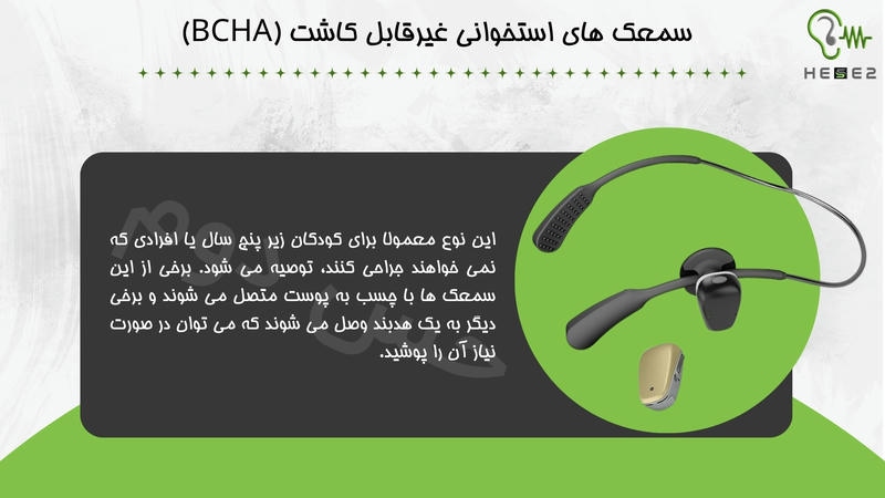 سمعک های BCHA (Bone Conduction Hearing Aids): برخلاف BAHA، سمعک های BCHA نیازی به جراحی ندارند. این دستگاه ها معمولا روی هدبند قرار می گیرند یا با چسب به پوست متصل می شوند و از طریق لرزش های استخوانی صدا را به گوش داخلی منتقل می کنند. این گزینه بیشتر برای کسانی که نمی خواهند جراحی انجام دهند یا برای کودکان زیر پنج سال مناسب است.