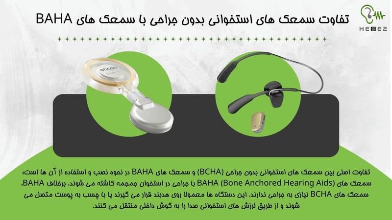تفاوت اصلی بین سمعک های استخوانی بدون جراحی (BCHA) و سمعک های BAHA در نحوه نصب و استفاده از آن ها است: