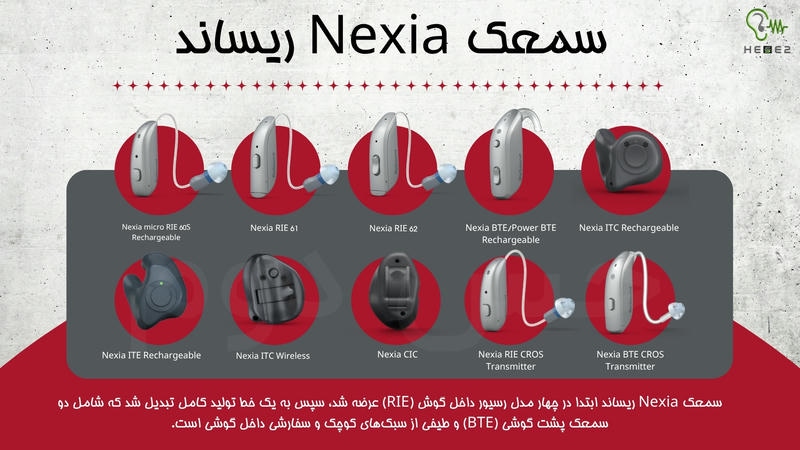 انواع سمعک نکسیا ریساند را در زیر میبینید: